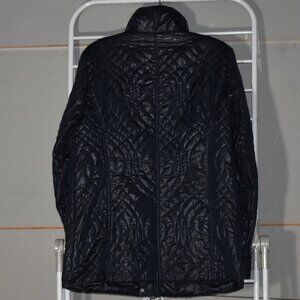 Front zipper w/front metal buttons, the lightweight filling promises protection from the cold.