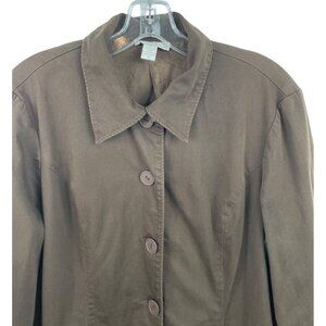 Laura Leigh Ltd. Brown Button Up Long Sleeve Canvas Jacket Lined Womens Size 14