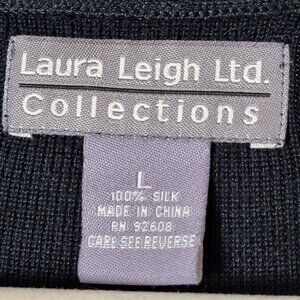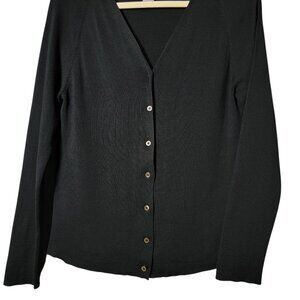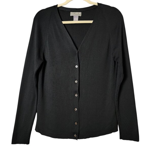 Laura Leigh Womens Black Silk Minimalist Business Casual Work Cardigan Sweater L