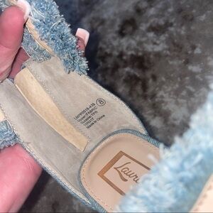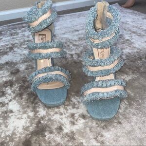 - Laura Marano Not Rated Platform Heels Blue Jean Fringe 5 inch Open Toe SZ 8