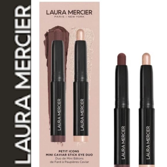Discover the Laura Mercier Mini Caviar Stick Eye Duo. Includes deep brown and soft cream shades. Ideal for versatile eye looks.