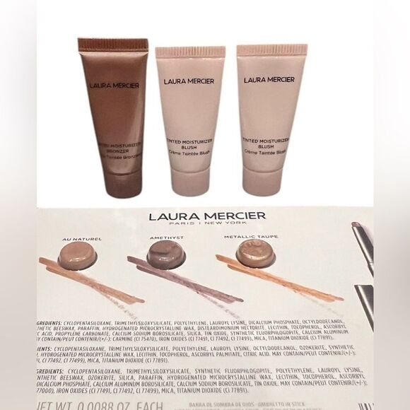 This listing is for a 4-P set of Laura Mercier Tinted Moisturizer Blush and Bronzer and Eye Color sampler