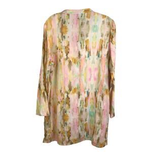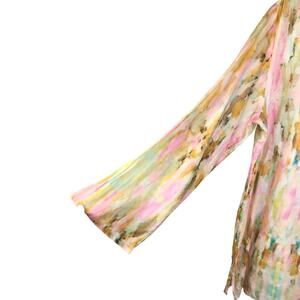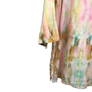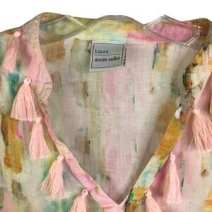 Laura Park Annie Selke Tunic Top Womens M/L Tie Dye Bell Sleeves Tasseled Neck Summer Boho
