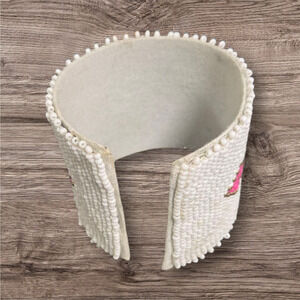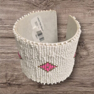 Add a pop of color and fun to your wrist with this Laura Park beaded bangle! This bangle features a beautiful combination of white and pink beads, creating a stylish and eye-catching accessory.
