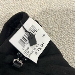 Discover our faux suede gloves delicately adorned with pearls, perfect for enhancing your winter look with a sophisticated touch. Pair them with a soft, neutral scarf for a chic and harmonious ensemble.Faux-suede fabric. Pearl embellished band at wrist