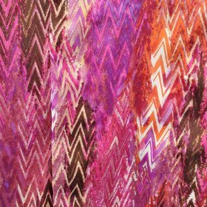Vibrant, colourful print with rich pink, red hues and earth tones