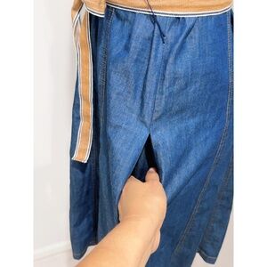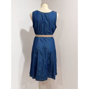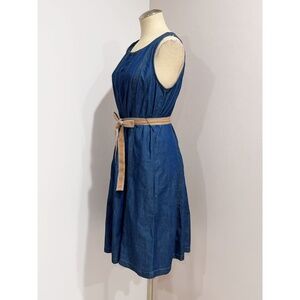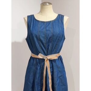 Beautiful lightweight denim, 100% Cotton dress with pockets and tie belt. Back zip closure, sleeveless and round neckline. Brand new without tags.