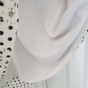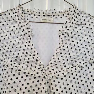 Laura Plus Polka Dot V Neck Blouse with Lace overlay and ruffled chest detail