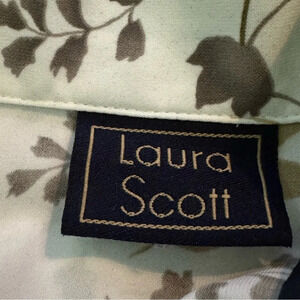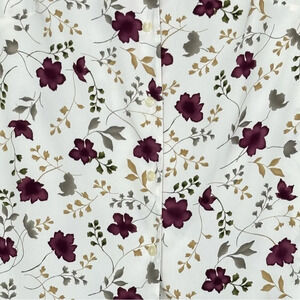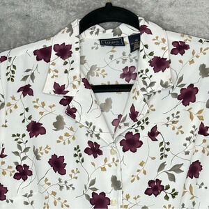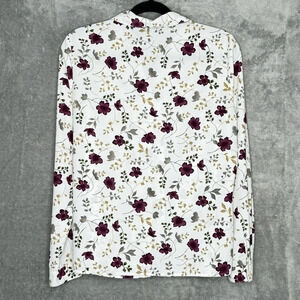 Laura Scott 10 Medium Shirt Top White Floral Long Sleeve V Neck Button Up Women