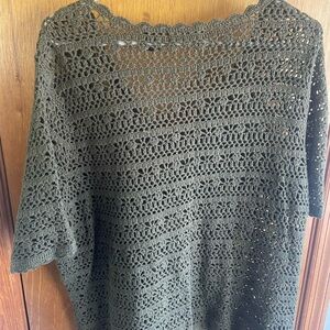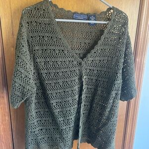 Laura Scott women crochet cardigan, olive green