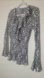 Laura Scott Black and White Printed Button Down Blouse Pleated Ruffle Collar Bell Sleeves Size XL Women