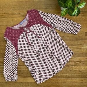 Laura Scott Boho Print 3/4 Sleeve Peasant Blouse Burgundy Ivory Size MP
