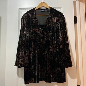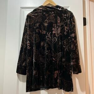 Laura Scott Burnout Dark Floral Velvet Blouse