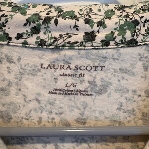 Laura Scott Classic Fit Green Floral Short Sleeve Polo - Size Large