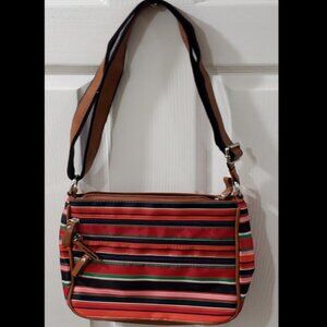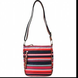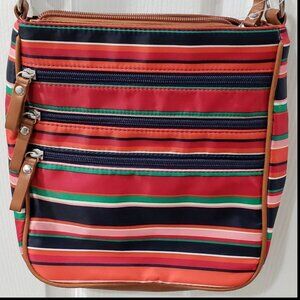 Brighten your accessories with this Laura Scott Women's Nylon Colorful Striped Crossbody Handbag! Designed with a vibrant striped pattern, this bag adds a cheerful pop of color to any outfit. NWOT