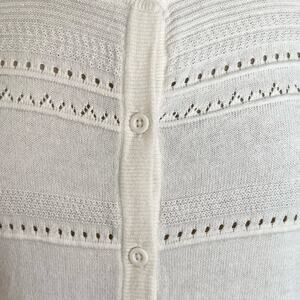 Laura Scott Cream Cotton Cardigan Sweater Round Neck Classic Fit MEDIUM Fall