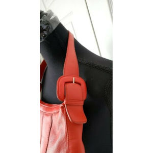 Laura Scott Genuine Red Leather Medium Size Handbag Shoulderbag Purse. There are a couple nicks on the buckle strap, but otherwise in great condition.. See photos. 13" wide, 8" height, 3" wide
