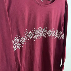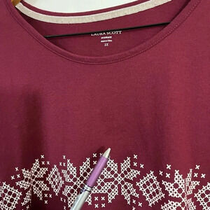 Laura Scott Maroon Snowflake Graphic Shirt Winter Womens Plus Size 2X Burgundy