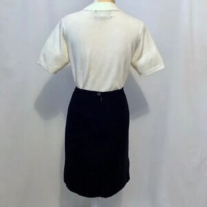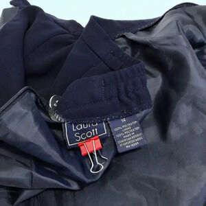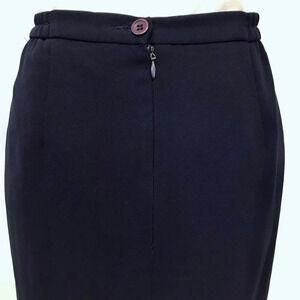 Excellent condition. Navy Mini Skirt for Women Size 14. Zipper and two buttons for closure back, elastic sides, internal lining, split sides bottom hem. Sweater is not included. Pictures are part of description.