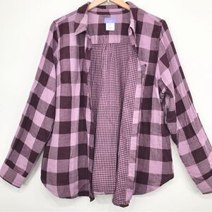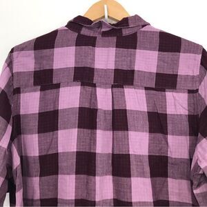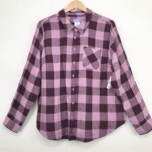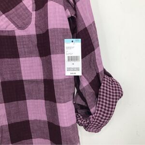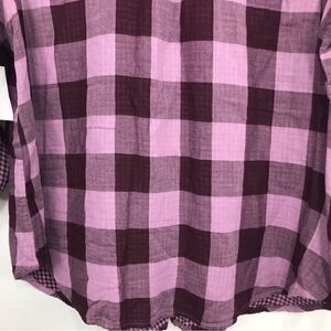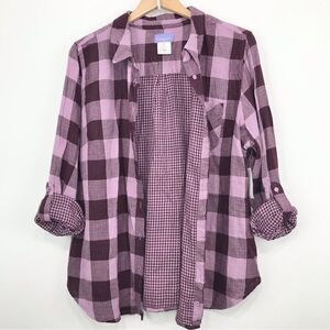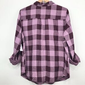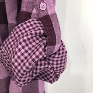 Laura Scott Purple Gingham Plaid Roll Tab Sleeve Button Up Shirt NEW