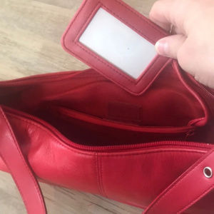 Multiple pockets; One zippered, Velcro pocket with photo holder