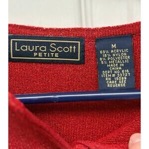 Laura Scott Red Sweater, Metallic Thread Cardigan, Women's Size MP