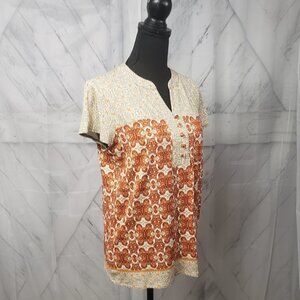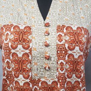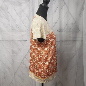 Laura Scott Rust Tan Boho Retro Granola Hippie Blouse Size S