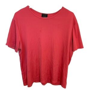 Good condition, has a grease spot (pictured). Laura Scott. Short sleeve t-shirt. Crewneck. Ribbed. Pink. no size/material tag, but is plus size. My best guess is a 1X; please see measurements to ensure proper fit. Pit to pit laying flat 22.5” Shoulder to hem 25” Sleeve (pit to hem) 3”. All measurements are approximate and taken lying flat. Smoke free home. No trades, offers welcome.