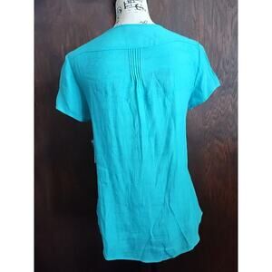 Laura Scott Size Small Viscose Button top blue green embroidered lightweight