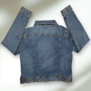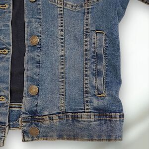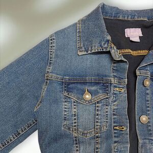 Laura Scott Blue Stretch Denim Button Up Distressed Jean Jacket Women's Small