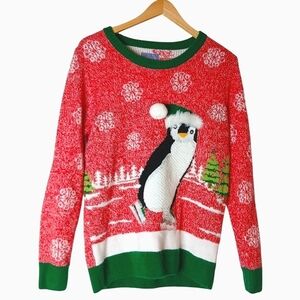 Laura Scott Sweater Christmas Holiday Skating Penguin Sequins Embellished