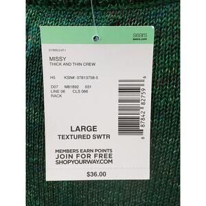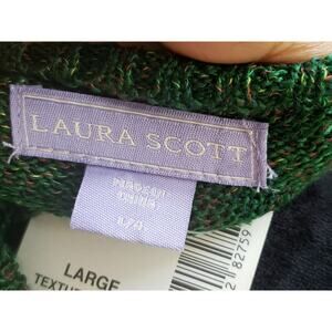 Laura Scott Sweater Women's Large Green Textured Long Sleeve Crew Neck Pullover