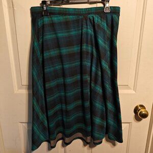 Laura Scott Teal Plaid Stretchy Midi Skirt | Medium