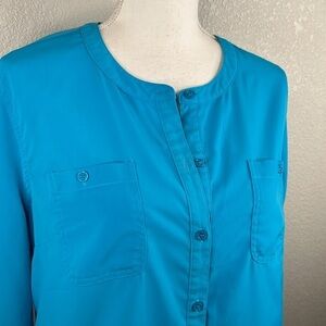 Laura Scott Turquoise Long Sleeve Button Down Top Size Large