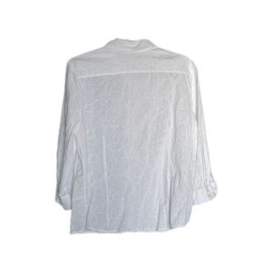 Laura Scott White Floral Embroidered 3/4 Roll Tab Sleeve Button Down Shirt Women’s XL