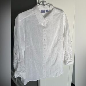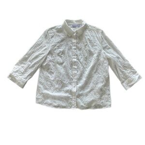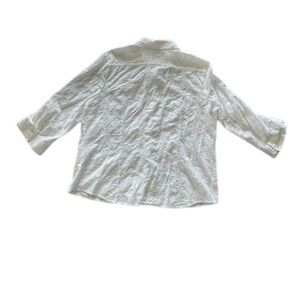Laura Scott White Floral Embroidered 3/4 Roll Tab Sleeve Button Down Women’s XL