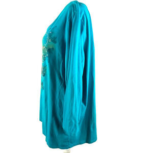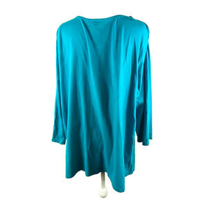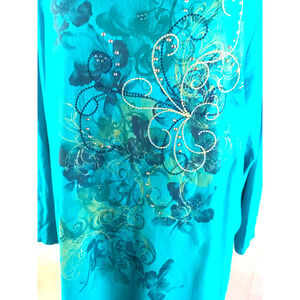Laura Scott Women Long Sleeve T Shirt Size 2 X Turquoise Blue Rhinestone...