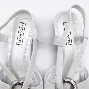 NEW Laura Scott Womens Ola Sandal Open Toe Light Gray Silver Wedge
