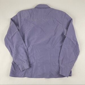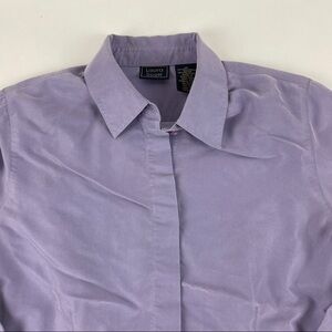 Laura Scott Women's Button Up Shirt Purple. Rayon/polyester blend. Shoulder pads.