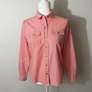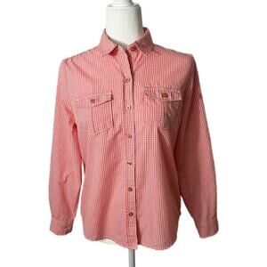 Laura Scott Women's Button Up Shirt S Pink Gingham Check Roll Tab Long Sleeve