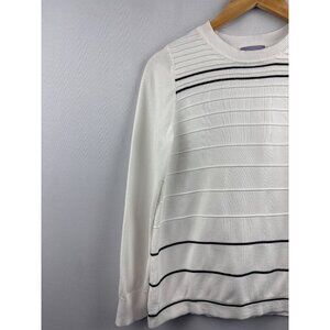 Laura Scott Women’s Medium Striped Cotton Blend Sweater White & Black
