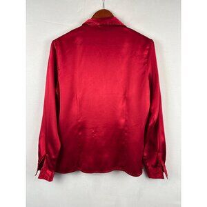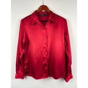Laura Scott Womens Red Satin Button-Down Blouse Size 8