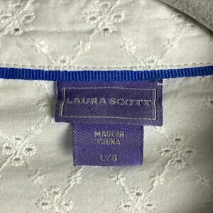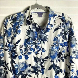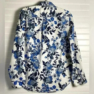 Laura Scott Women's Size L White/Blue Floral Button-Down Long Sleeves Shirt Top