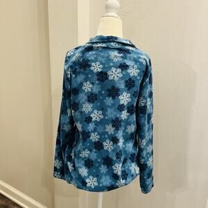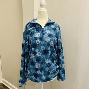 Laura Scott Women's Size M Pullover Fleece 1/2 Zip Snowflakes Print Blue