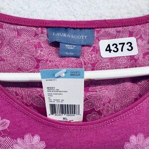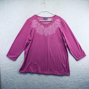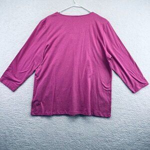 Laura Scott Womens Tunic Size XL Pink 3/4 Sleeve Rhinestones Lace Graphic New