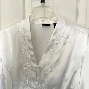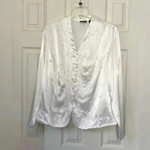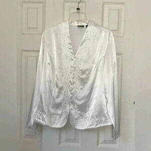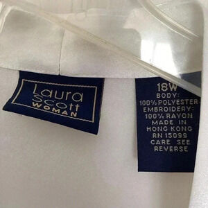 Laura Scott Women's White Button Up Long Sleeve Embroidered Floral Top Size 18W