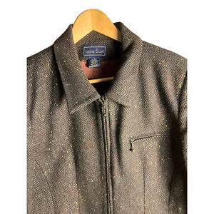 Laura Scott Wool Blend Brown Tweed Jacket-Size 14 Career Wear Business Casual
