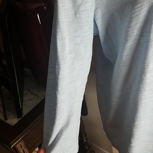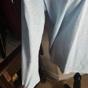 Laura Scott, 0020, light blue, round jeweled neck, 3/4 length sleeves, shoulder to hemline 27", pit to pit 22", size L