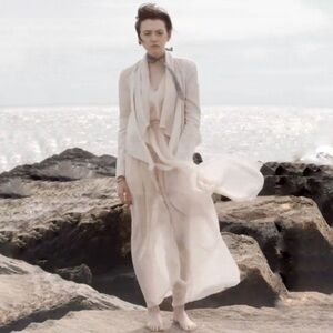 Laura Siegel Hemp Tencel Blend Draped Waterfall Jacket in Cream / Natural Beige, Women’s Size Small