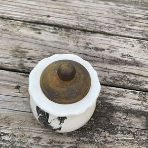 Laura Zinder Rooster Canister w/ Lid in gently used condition. Very hard to find piece. Measures about 4” tall.